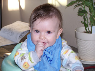 I just can't even believe that Joshua is 6 months old. Babies have been born all around us since he was born and I forget how small he used to be and how big he is now. He is getting to be so fun though, he has a little laugh, he smiles all of the time, he rolls all over the floor to get to where he wants to go. He also loves the Exersaucer that we were lucky enough to borrow from friends. He has had 2 teeth officially pop all of the way through the gums and therefore officially become a "biter". He loves Megan so much, she can get him cracking up at all of her dancing and jumping around. He is just a sweet, sweet baby and loves to cuddle his mama. He is a major mama's boy which has gotten to be a little overwhelming at times when he won't have anything to do with anyone but me but I'm sure he'll out grow that faster than I know and then I'll be sad! So I probably shouldn't complain. You can also see his new little haircut better in these pictures. Oh I love him!